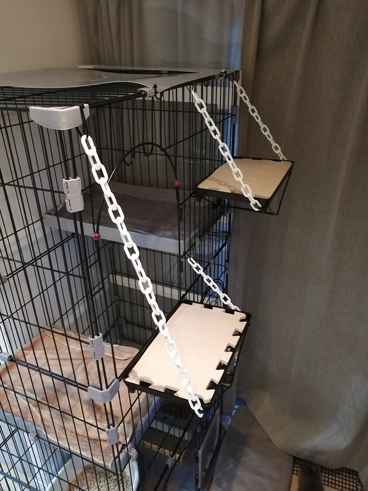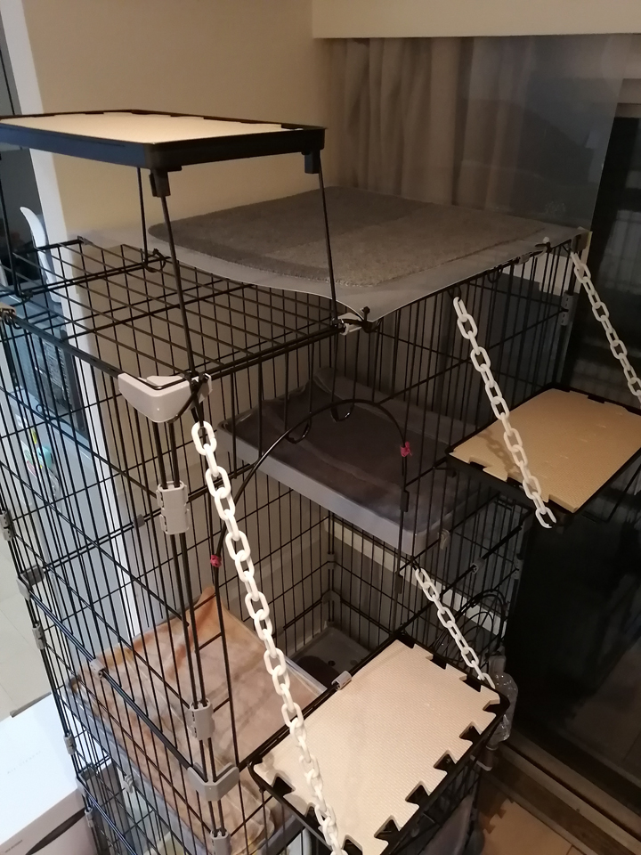 [4]2023年4月1日~2023年4月12日未分類 Contents1. 2023年4月1日(土)2. 2023年4月4日(火)3. 2023年4月5日(水)4. 2023年4月8日(土)5. 2023年4月9日(日)6. 2023年4月10日(月)7. 2023年4月11日(火)8. 2023年4月12日(水)9. 2023年4月13日(木)10. 2023年4月14日(金) 2023年4月1日(土) 2023年4月4日(火) ケージの天井に登って降りれなくなるネコ 2023年4月5日(水) お気に入りのダンボール マットの余りで作った箱 キャリーバッグ内で遊ぶネコ 2023年4月8日(土) 2023年4月9日(日) 2023年4月10日(月) 台所侵入防止扉。問題が発覚して取り付け断念 ケージ天井へ行けるキャットウォークを作成 2023年4月11日(火) キャットウォークの鎖が気になるネコ 2023年4月12日(水) ケージ天井にもう一段高い台を設置 2023年4月13日(木) 2023年4月14日(金) 結束バンドで遊ぶネコ 鈴が入ったおもちゃを作ったがあまり関心持たれず